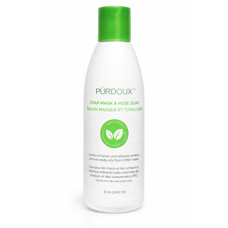 Purdoux CPAP Mask & Hose Soap – is a scented cleaning product designed to clean silicone surfaces on CPAP masks and hoses.